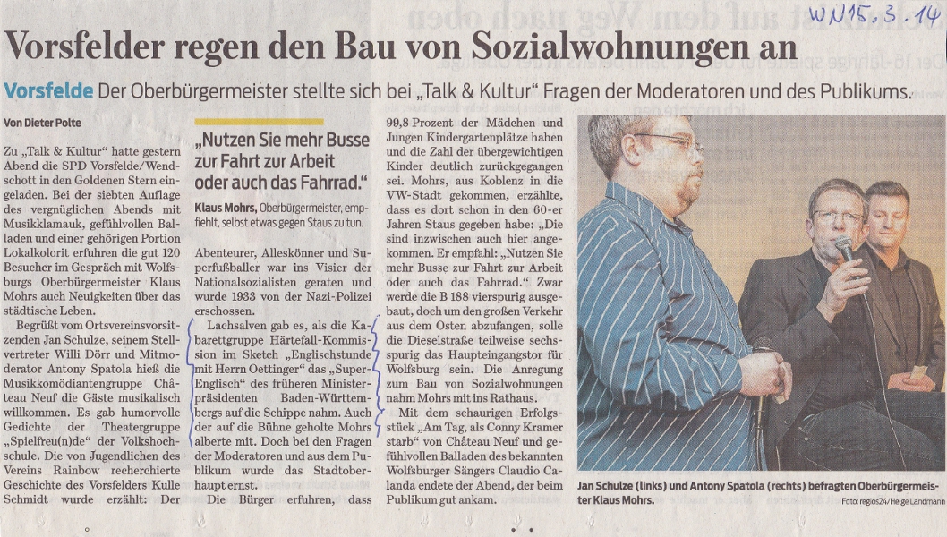 TERMINE: 19. Mai 2016, 19 Uhr (Hallenbad Wolfsburg / "Offene Bühne"): Wir begrüßen alle Claquere, die uns willfährig und selbst- sowie anlasslos ihren Applaus spenden! Nicht abzugsfähige Sendenquittungen stellen wir gegen die Vorlage unseres Lichtbildes aus. Weiteres