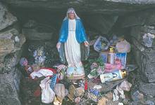 ![]() So manifestiert sich Glaubensgewissheit: Eine mit allerlei Tinnef umgebene Madonna! |